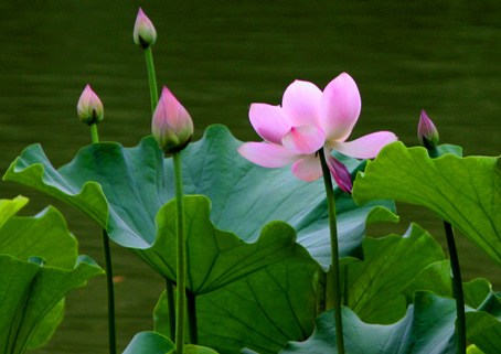 出水荷葉:如碧玉,似翡翠,視水而高低,飄而不移;