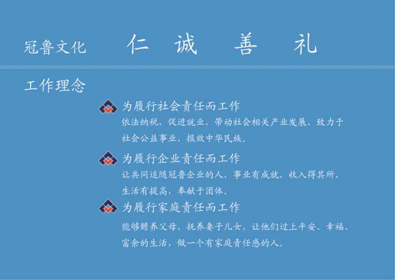| 冠魯百川幕墻有限公司成立于2010年,隸屬于冠魯集團董事局。具備建筑裝飾、幕墻工程設計與施工一體化壹級資質,獲得ISO-9001質量體系認證;市級重合同、守信用企業;幕墻行業全國前50強企業。主要承擔各類建筑幕墻及建筑工程的設計與施工、石材加工銷售、玻璃幕墻及金屬幕墻門窗生產、加工、銷售。公司擁有各類專業技術人員200人,市場開發區域遍及北京、天津、河北、山東等國內大中型城市,工程承接能力逐步得到提高,工程施工質量、服務得到廣大業主的高度評價。 冠魯集團公司確立了“仁”、“誠”、“善”、“禮”的企業文化,以履行“社會責任、企業責任、家庭責任”為己任,奉行“寧可自己辛苦萬遍,不讓客戶為難一時”的服務理念,本著“一點都不能差”的工作精神,認真貫徹“質量、服務、速度、誠信”工作方針,贏得了客戶、合作伙伴、業內同行及政府的信任、尊重和贊譽。“匯百川之水成浩瀚大海,集天下賢士創冠魯偉業”!冠魯人愿與社會各界賢人志士精誠合作,攜手共創美好未來! |