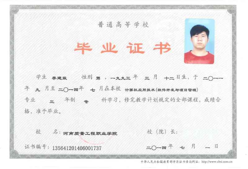 | 畢業學校: | 河南省質量工程職業學院 | 所學專業: | 計算機應用 | |