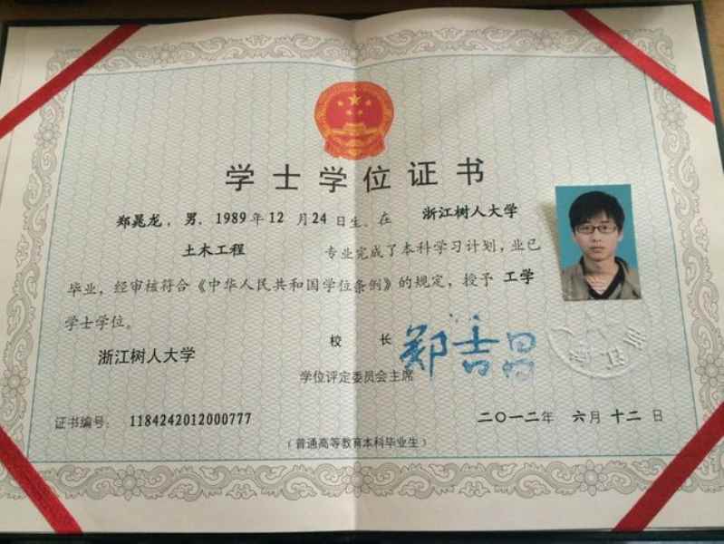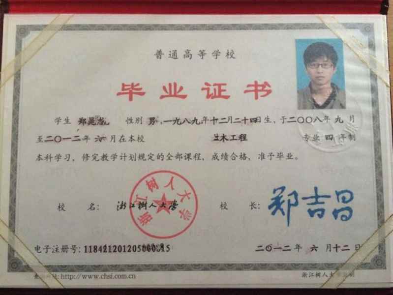 浙江樹人大學(xué) 本科 土木工程 2012.6