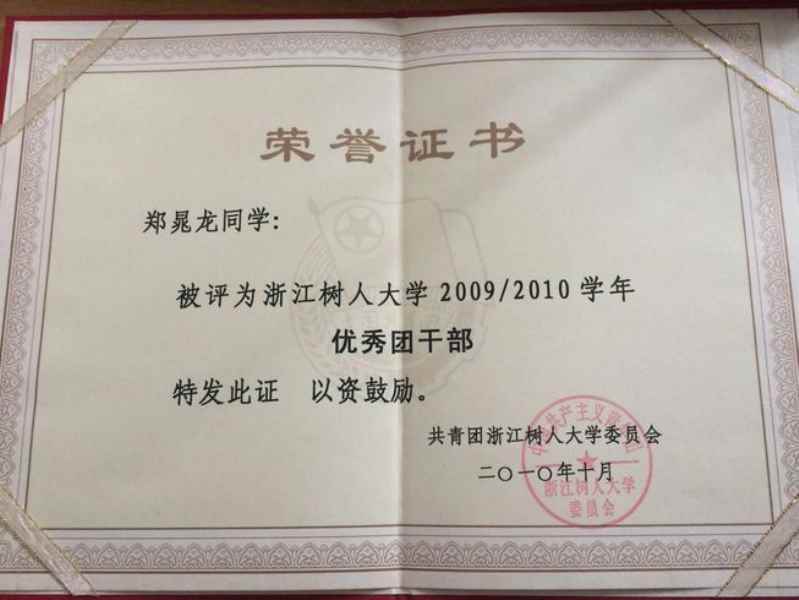 2009-2010學(xué)年獲得浙江樹人大學(xué)優(yōu)秀團(tuán)干部