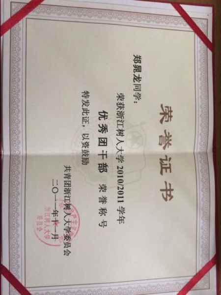 2010-2011學(xué)年獲得浙江樹人大學(xué)優(yōu)秀團(tuán)干部