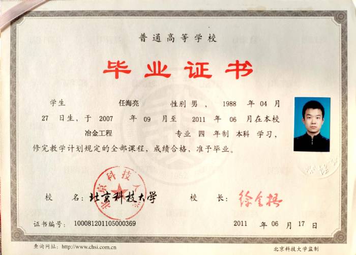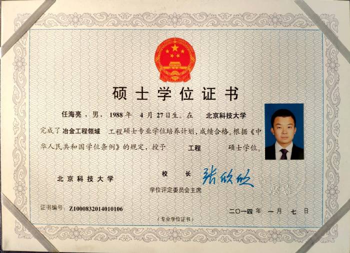 | 畢業學校: | 北京科技大學 | 所學專業: | 冶金工程 | |