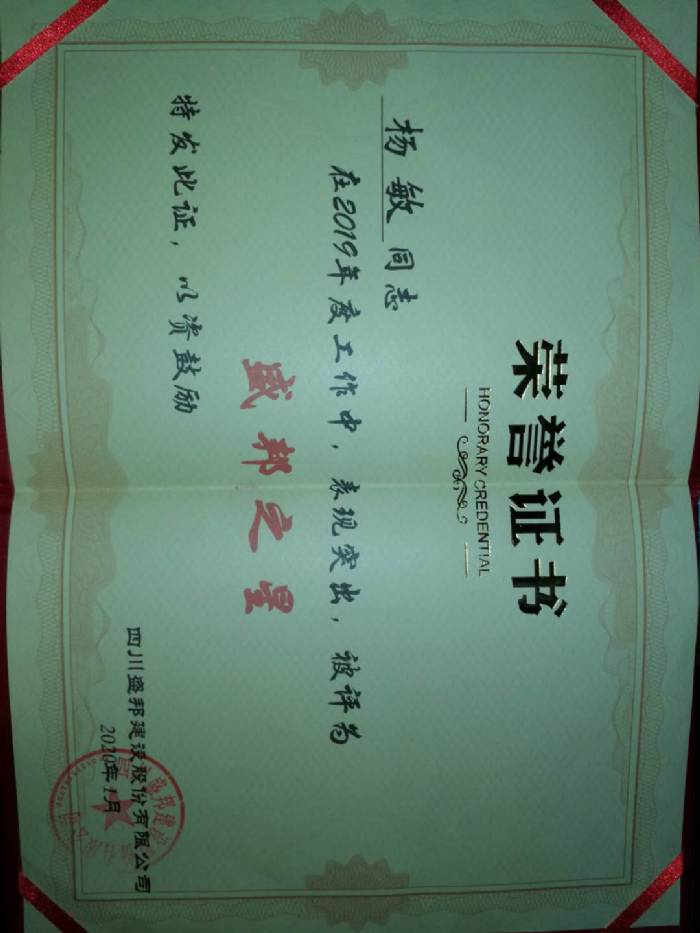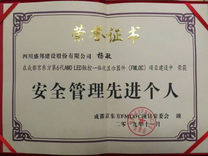 3、分別于2019年8月、11月被業主評選為“安全管理先進個人”榮譽。